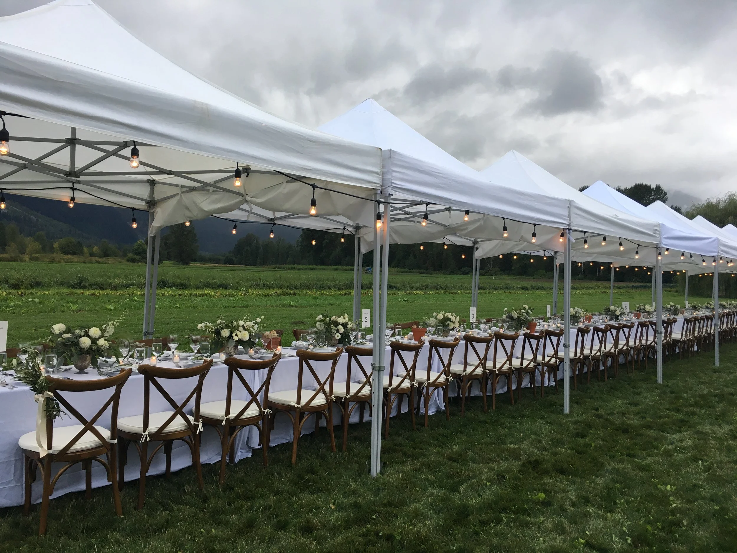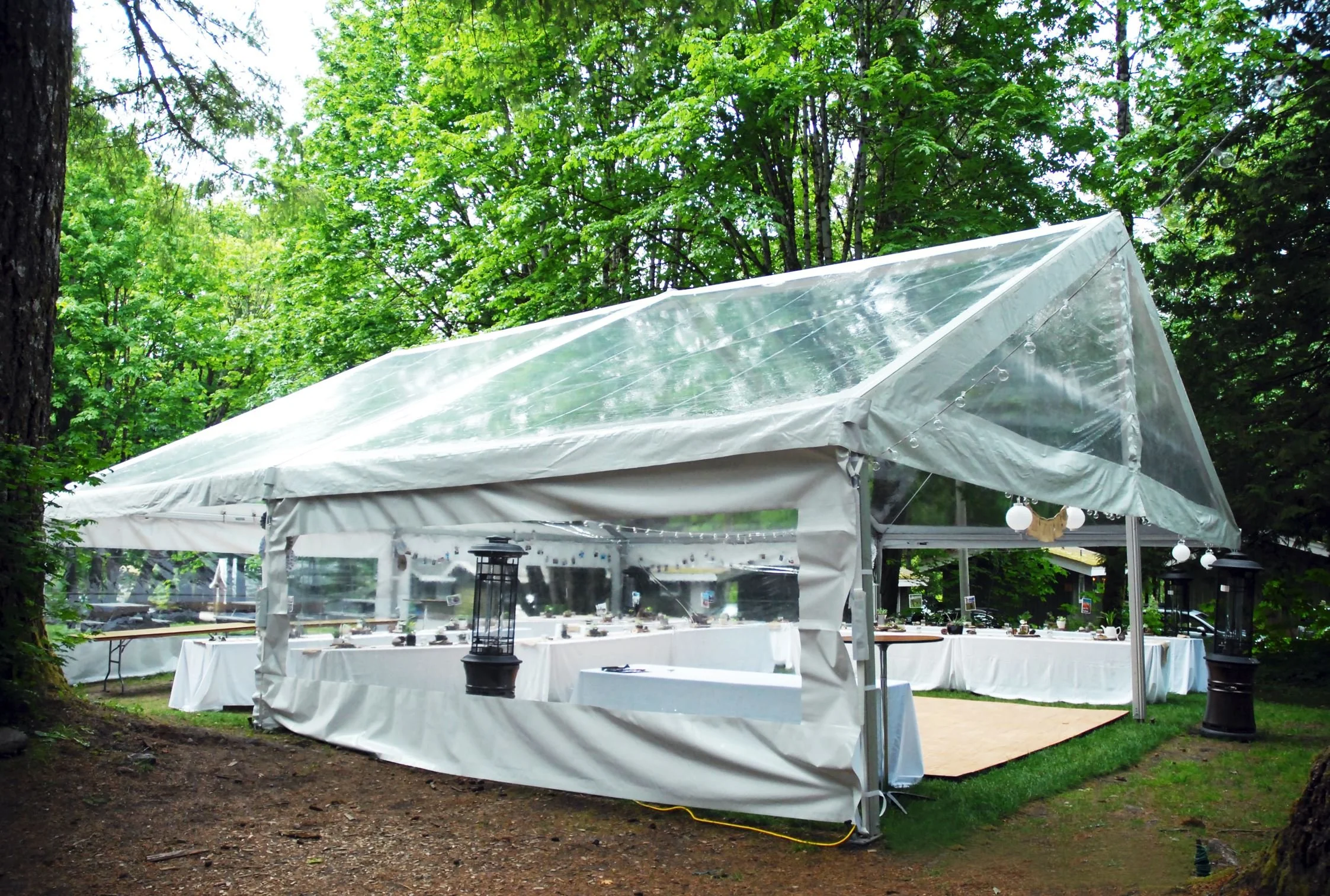 Professional frame tent rental with no center poles, maximizing usable space and allowing secure installation on grass, concrete, or hard surfaces.